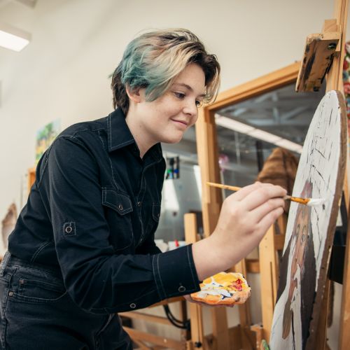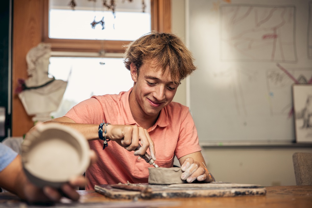 Students in grades 9–12 have the opportunity to deepen their passion for visual arts through courses such as Studio Art, Drawing, Ceramics, Portfolio Art, Yearbook, and AP Art & Design. With an emphasis on in-depth exploration, self-expression, and technical growth, students are encouraged to develop their unique artistic voice. The fully equipped Fine Arts studio supports work across a range of mediums, including woodworking, ceramics, fiber arts, and digital art and design. Each year, their creativity is celebrated at Gallery Night, where students showcase and present their work to the entire community.